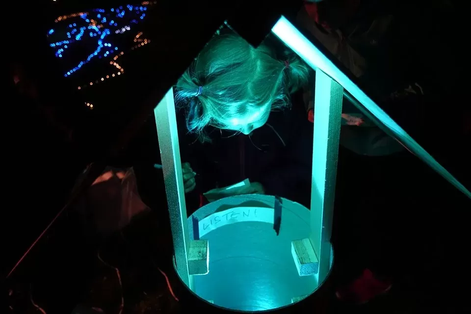 Beneath the feet of Toronto are the buried rivers that were paved over as the city was built. For one night we brought Garrison Creek, which flows under Christie Pitts park, back to the city using streams of blue light , sound, and conversations that imagined a different reality: What else has the city buried? The buried river serves as a potent metaphor for other buried narratives, marginalized voices and alternate realities of the city. The phantom of the Garrison creek transformed Christie Pitts park offering the audience a different futurism on the night of Nuit Blanche as it unearthed some of those buried narratives