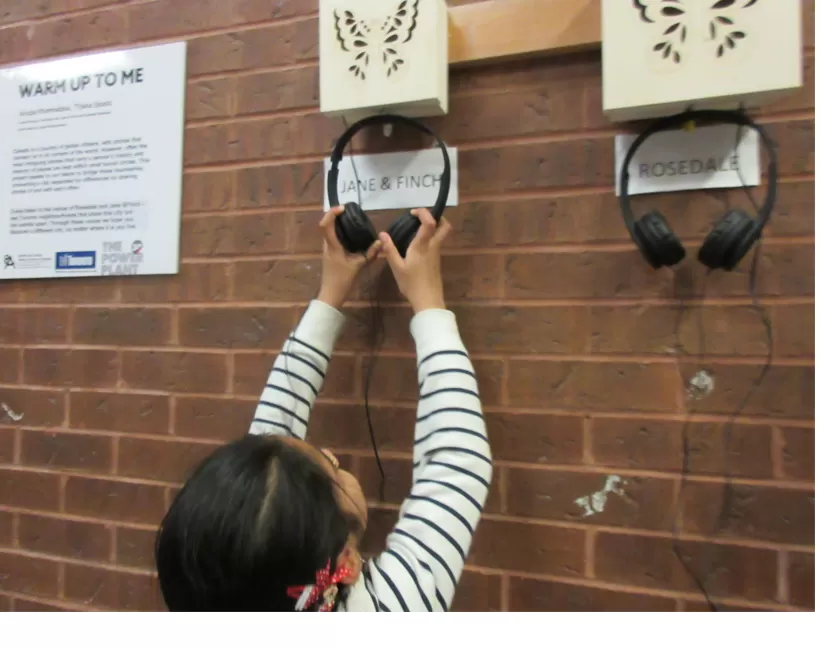 Audio Installation Warm Up To Me playing community stories from Rosedale mixed with those from Jane & Finch.